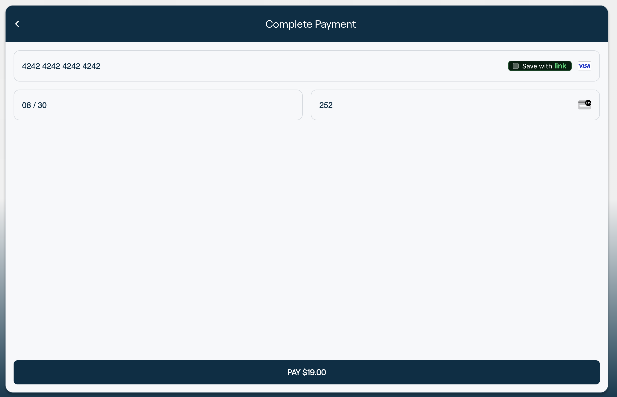 - You can simulate a credit card payment by using the following credit card details (The expiry can be any date in the future, and the CVV can be any 3 numbers - the Card number needs to be 4242 4242 4242 4242)